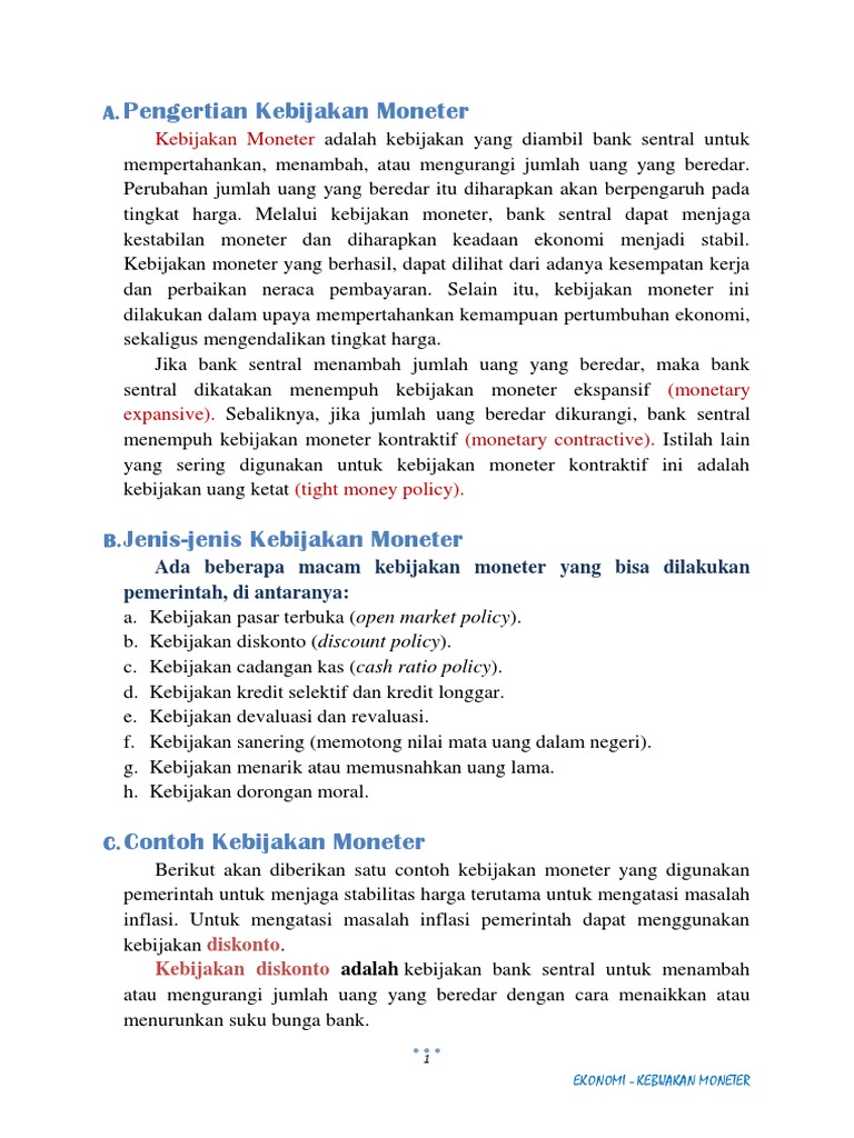 Kebijakan moneter adalah proses mengatur persediaan uang sebuah negara untuk mencapai tujuan tertentu; Salah satu fungsi adanya moral adalah terjaminnya kebahagiaan jasmani rohani karena. Untuk memengaruhi jumlah uang yang beredar, bank sentral dapat mengeluarkan pidato, pengumuman atau edaran kepada bank umum dan. Selanjutnya adalah kebijakan kredit ketat, yaitu kebijakan untuk mengawasi jumlah uang yang beredar. Moral suasion policy adalah kebijakan moneter untuk mengatur jumlah uang beredar dengan jalan.