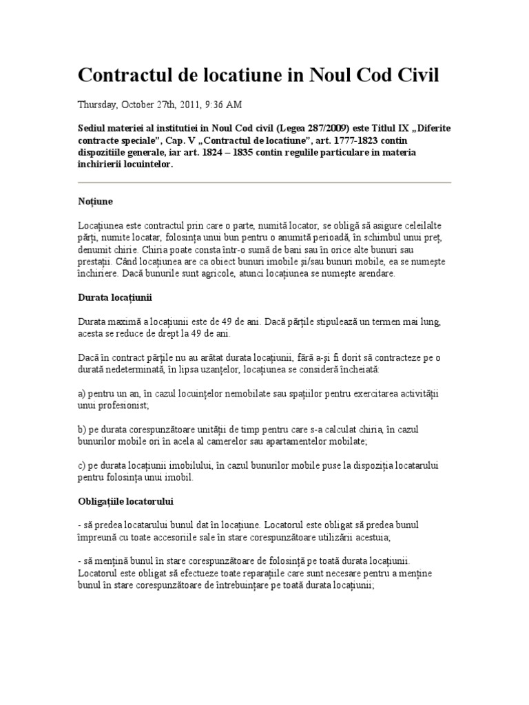 untuk "Contractul De Locatiune Noul Cod Civil"