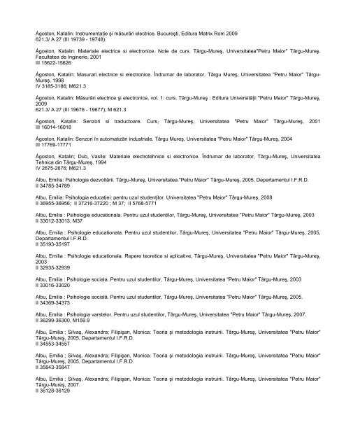 The petru maior university (romanian: 1960 yılında tîrgu mureş pedagoji enstitüsü olarak kurulan petru maior üniversitesi, 1991 yılında tîrgu mureş teknik üniversitesi, 1995 yılında tîrgu mureş üniversitesi ve 1996 yılında üniversitenin şu anda târgu mureș tıp, eczacılık, bilim ve teknoloji üniversitesi'ne entegre edilmiş 3 fakültesi vardı Last update was on just now.