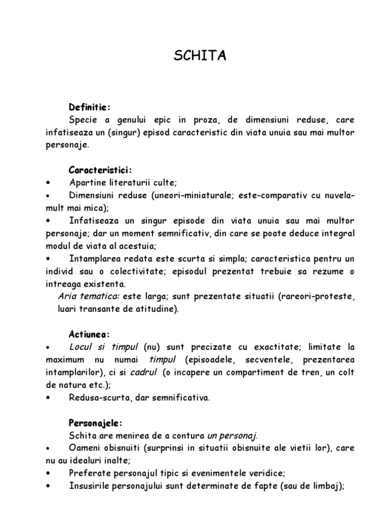 Trasaturi, definitie si autori de schite din literatura romana. Definitie, trasaturi, plan de argumentare definitie.