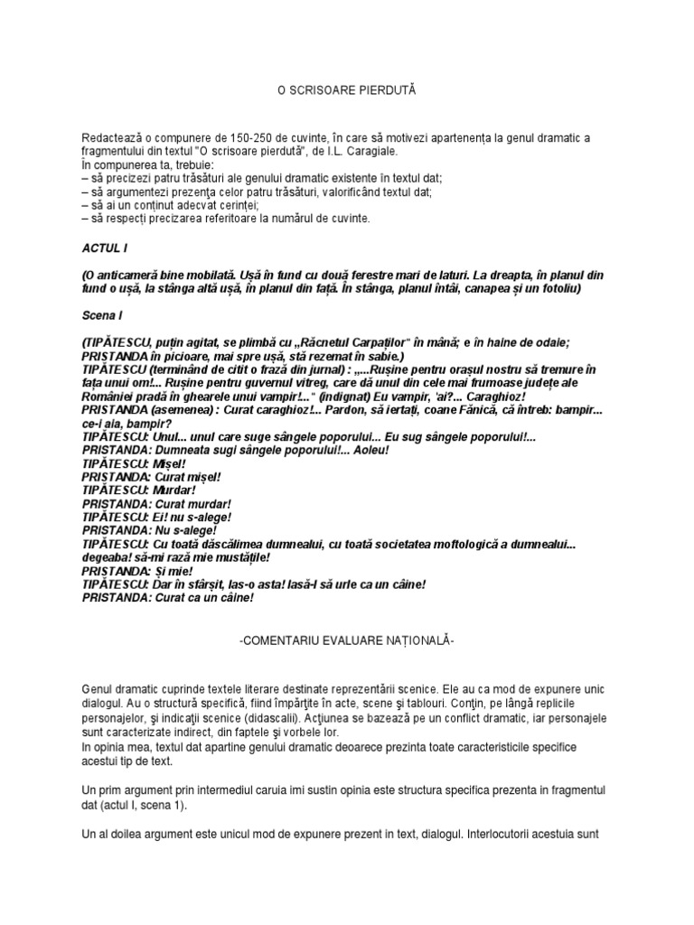 vizitati articolul complet aici : xdocs.ro Conflictului dramatic principal i se alatura si alte conflicte, secundare (neintelegerile dintre zoe si tipatescu in privinta sustinerii candidaturii lui catavencu, acuzatia de. Genuri si specii literaregenul literar: In cazul fragmentului citat conflictul dramatic este (aici specificati conflictul).