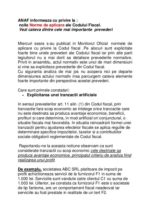 Norme metodologice din 6 ianuarie 2016de aplicare a legii nr. Recent, autoritățile au publicat proiectul de hotărâre a guvernului pentru modificarea şi completarea normelor metodologice de aplicare a codului fiscal. 227/2015 privind codul fiscal, cu modificrile i completrile ulterioare (codul fiscal), se are n vedere ca raportul juridic ncheiat ntre pri s conin, n mod obligatoriu, clauze contractuale clare privind obiectul contractului, drepturile i obligaiile.